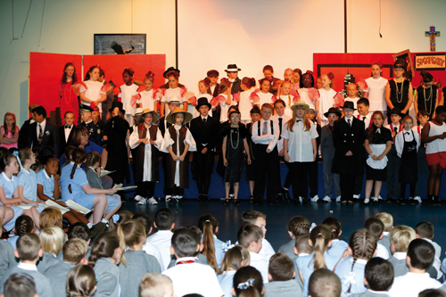 In the short space of two months the pupils of All Saints Primary School became the cast of Bugsy Malone. The children were introduced to the Alan Parker musical and worked tirelessly to develop strong American accents, deadpan acting and exuberant singing. Pupils showed resilience and confidence along the way, culminating in two evening performances that brought the house down. The children completely enjoyed the experience and were bursting with pride after the final performance, with several children asking, “Can we do it again tomorrow?” The audience were generous with their praise and positive comments giving the children standing ovations each time. Parents were amazed at the ability of their children to command the attention of an audience for nearly two hours.